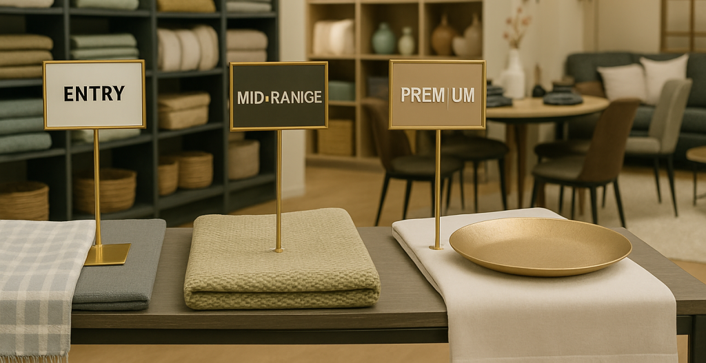 Organize o mix por faixa de preço: entrada, intermediário e premium